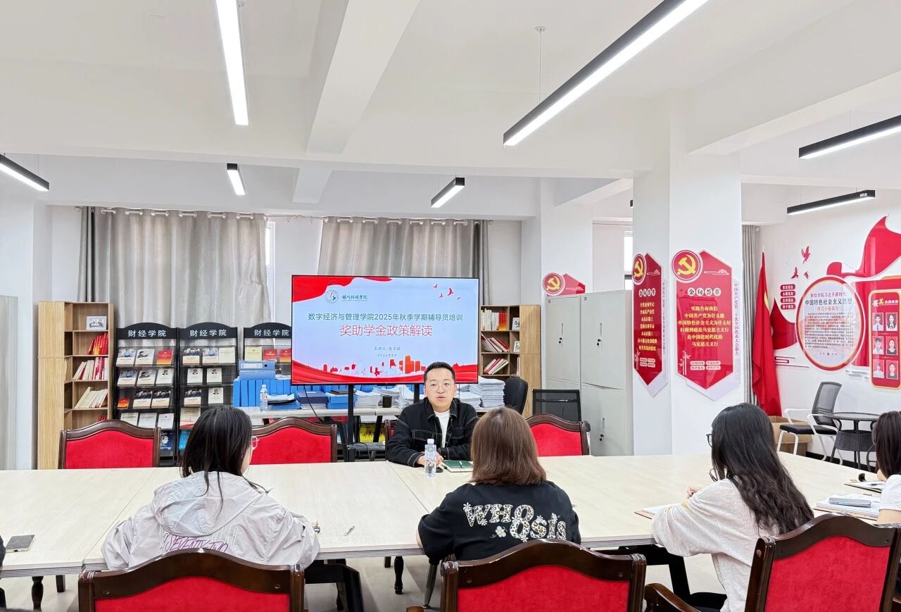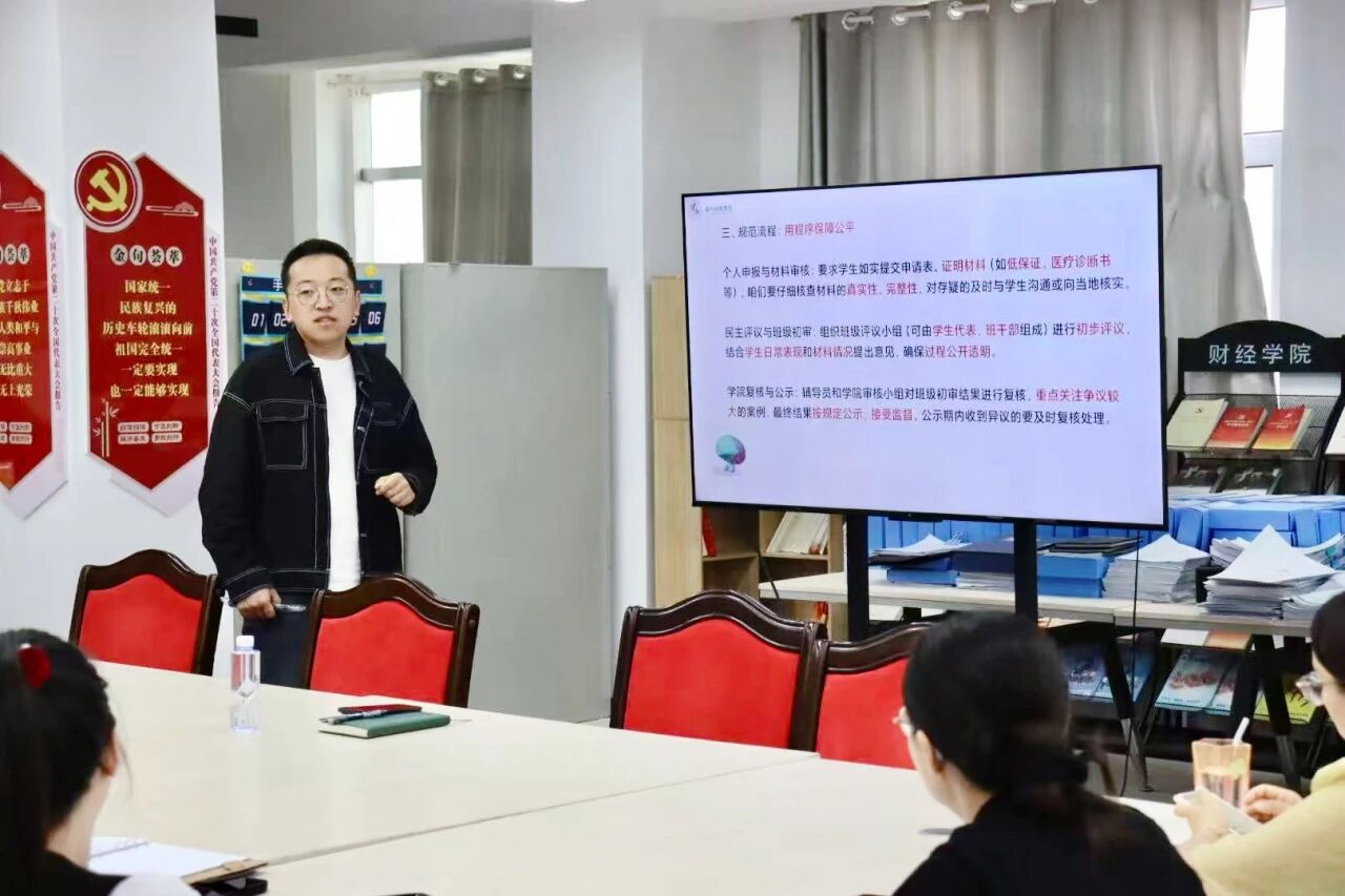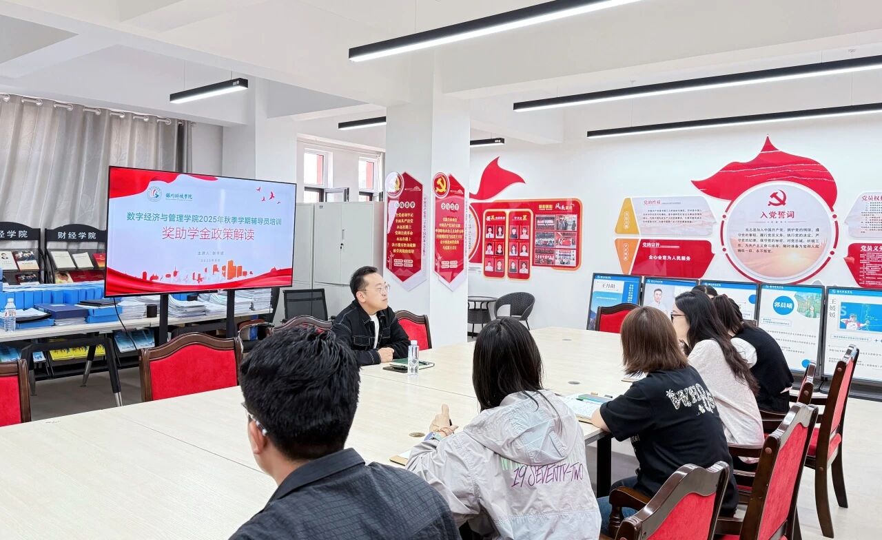 为切实推进学生资助工作落地见效,精准破解辅导员在资助工作中的实操难题,帮助其全面掌握奖助学金政策核心要点,8月28日上午,数字经济与管理学院特邀学生工作处学生资助管理中心张令斌老师,在A2-503会议室开展学生资助政策解读专题培训会,学院全体辅导员参会。