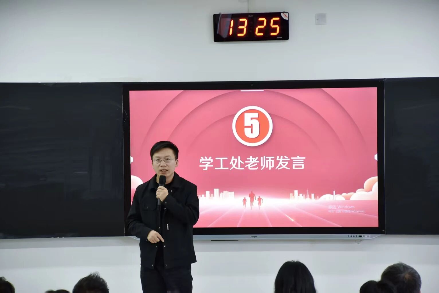 活动的最后,由虎老师上台发言。虎玉洋老师希望新一届学生干部,坚持以学生为中心服务理念,积极反映同学需求意见,为学校发展和学生成长贡献力量;鼓励同学们在该平台锻炼能力、提高综合素质,为未来发展奠基。同时也嘱托同学们以学业为重,做好工作和学习的平衡工作。