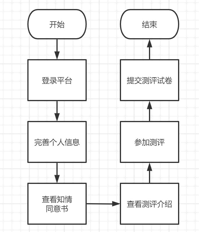 阅读测评介绍,了解参加测评的目的、形式以及要求。阅读完毕后点击“开始测评”进入答题页面。如下图: