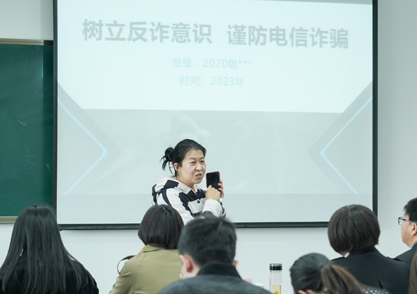活动开始前,通过现场抽签的方式确定了本期讲课的9位辅导员老师,他们围绕女生安全、校园控烟、就业指导、防范电信网络诈骗等主题精心设计班会课内容,巧妙借用实物、情景模拟、视频、小组讨论、课堂提问等手段,饱含热情地为大家带来了一堂堂主旨鲜明、理论深刻、风格多样的主题班会课。